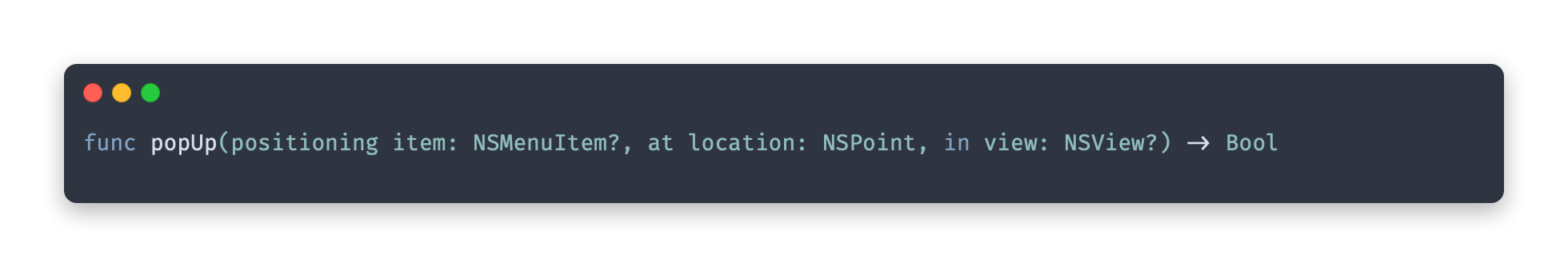 As you can see by the code above, it is very easy to display a context menu when your UI requires it. By using the NSMenu::popUp(positioning:at:in:) instance method we can specify exactly where we want the NSMenu to appear.